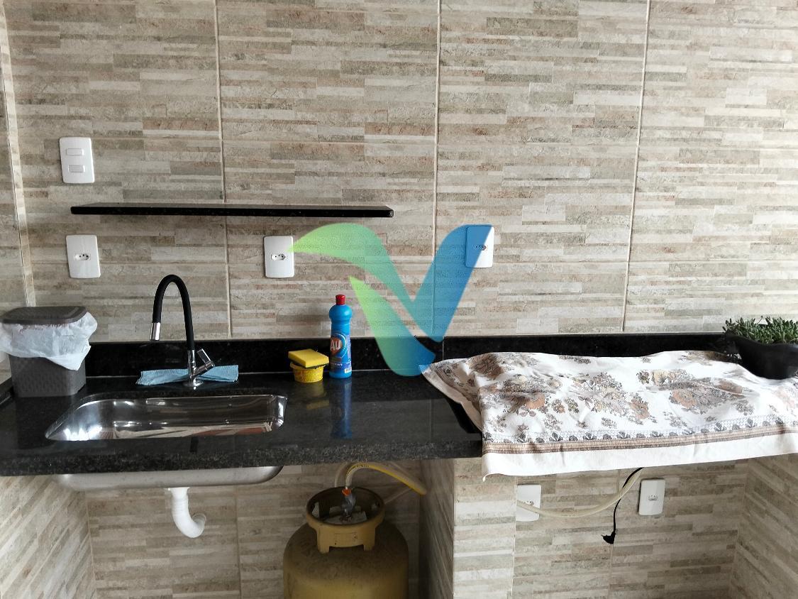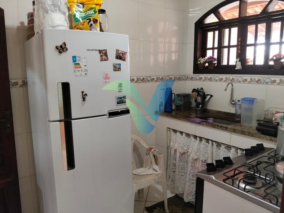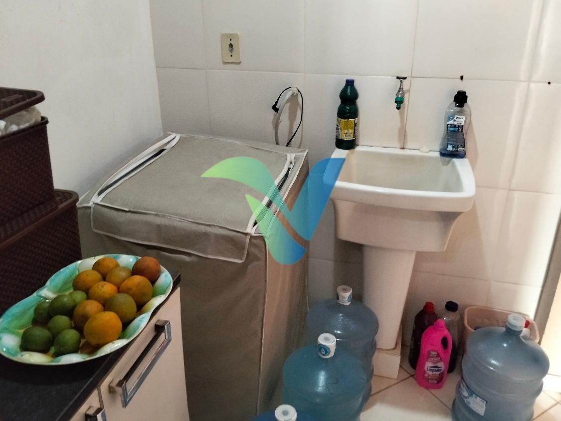 A cozinha é tradicional e funcional, acompanhada de área de serviço bem planejada.